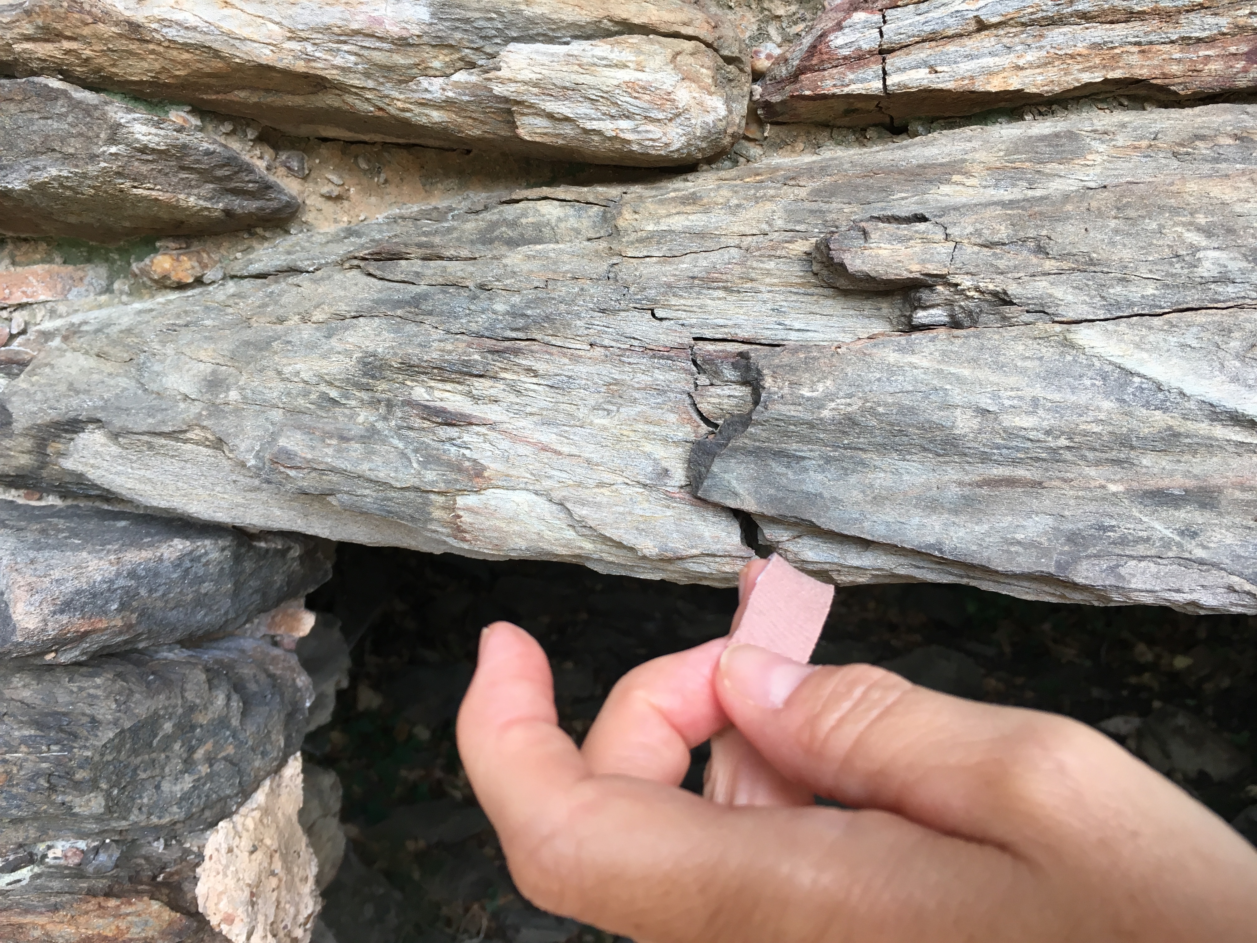 Lapidum consta de una primera parte en una ruina dentro del Parque natural en la que se investiga en grupo sobre la ruina como hogar y refugio y también como desecho llevando a cabo diversos experimentos de medir, numerar, aportar piedras que no son del lugar, cuestionarse la relación entre piedra y tecnología, pasado y presente, dibujar con tiza, sostener con lana. Acciones que sirven como caldo para la exposición en ARBAR y la posterior performance.